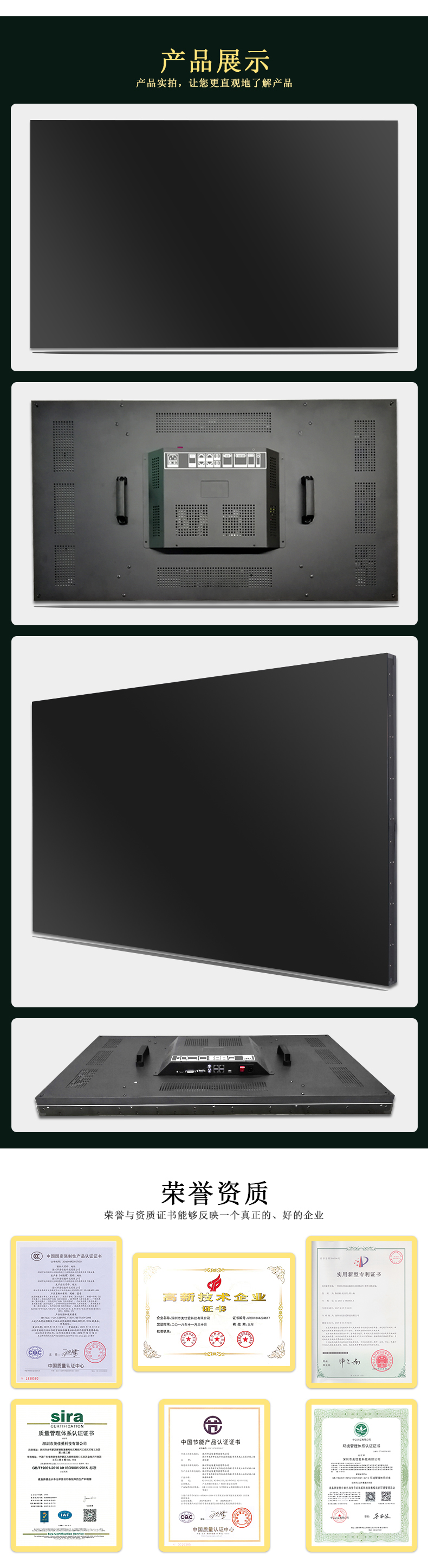 【美佳愛(ài)-4k液晶拼接屏生產(chǎn)廠(chǎng)家電話(huà)400-997-9971】原裝LG49寸液晶拼接屏1.8mm700cd產(chǎn)品通過(guò)ISO9001_3C_節(jié)能認(rèn)證等30多項(xiàng)認(rèn)證,主營(yíng)LG/京東方/三星大屏幕電視墻,其尺寸有32寸40寸43寸46寸49寸55寸65寸75寸液晶拼接單元,也有曲面,弧形,柔性,無(wú)縫LED顯示屏,顯示器,超窄邊高清監(jiān)視器,提供企業(yè)展廳展示,KTV,酒吧,會(huì)議室,視頻監(jiān)控系統(tǒng)解決方案設(shè)計(jì)-報(bào)價(jià)-安裝施工-售后超窄邊維修等服務(wù)