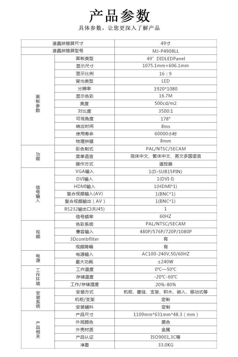 49寸 8mm -產(chǎn)品規(guī)格書 |