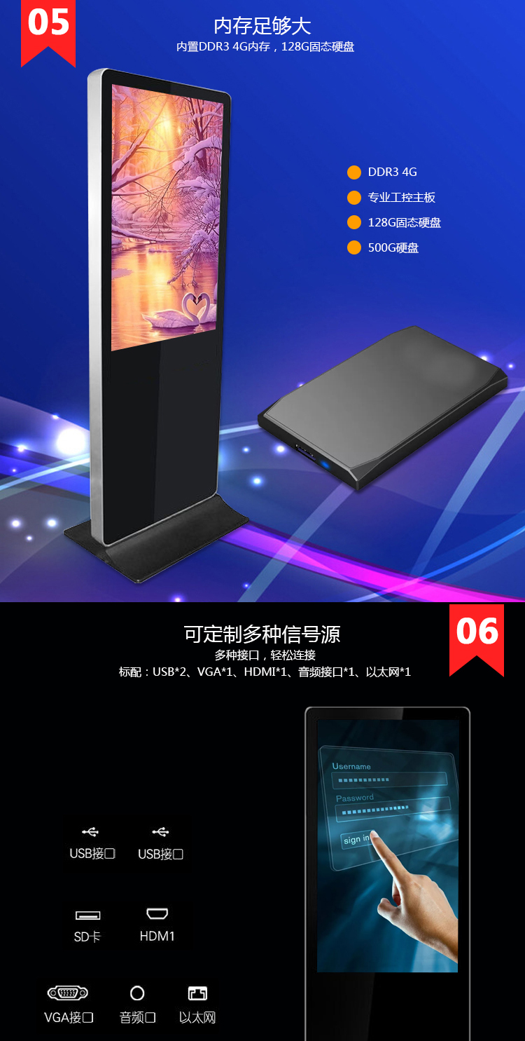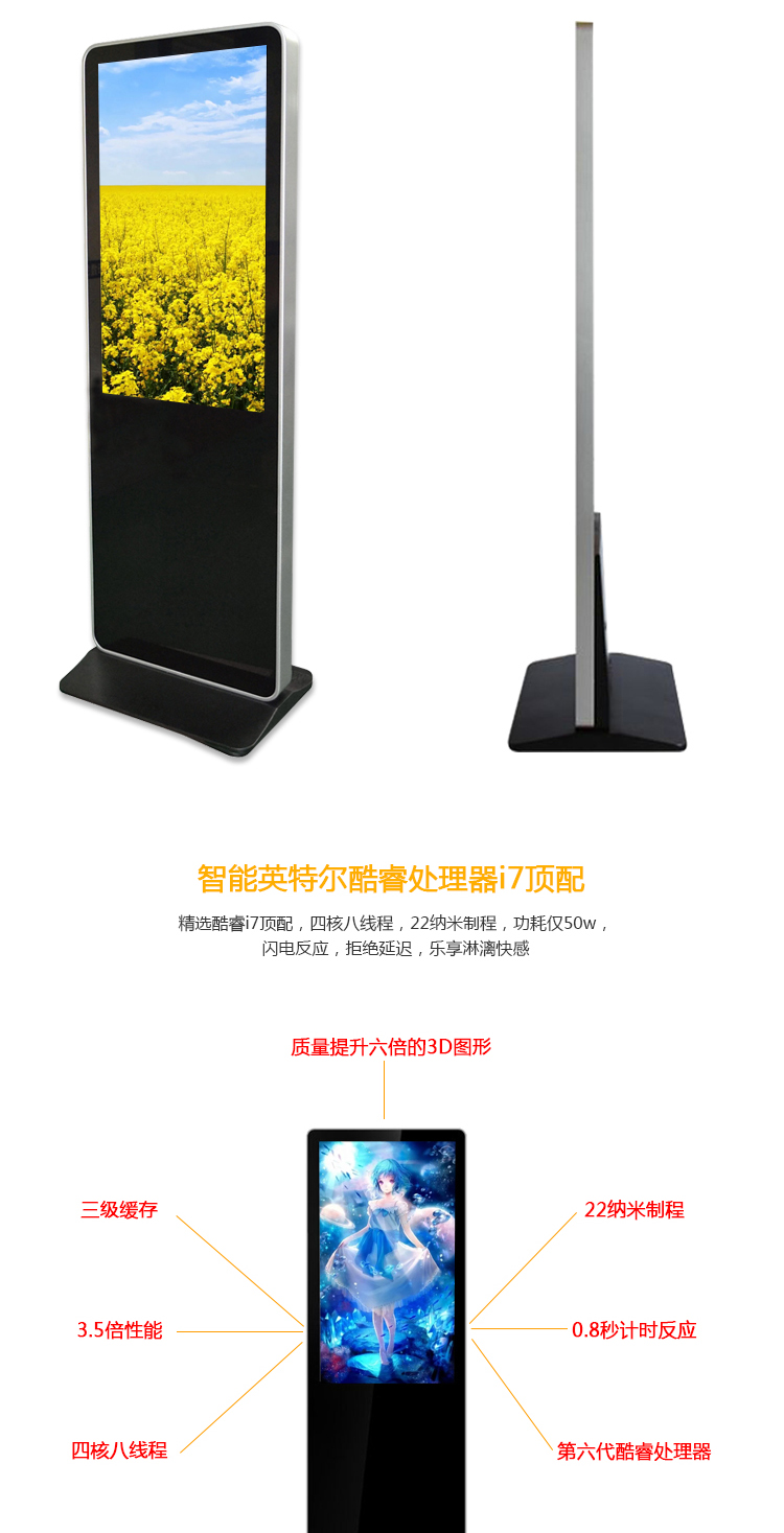 - 安裝方式:落地式豎屏安裝