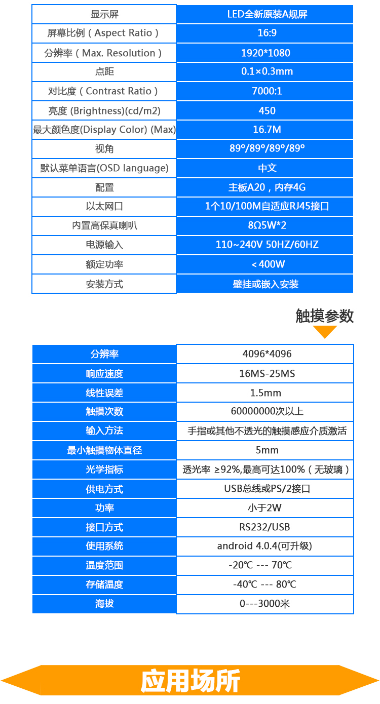 觸摸屏參數(shù)(紅外觸摸屏) | PC標配參數(shù) |