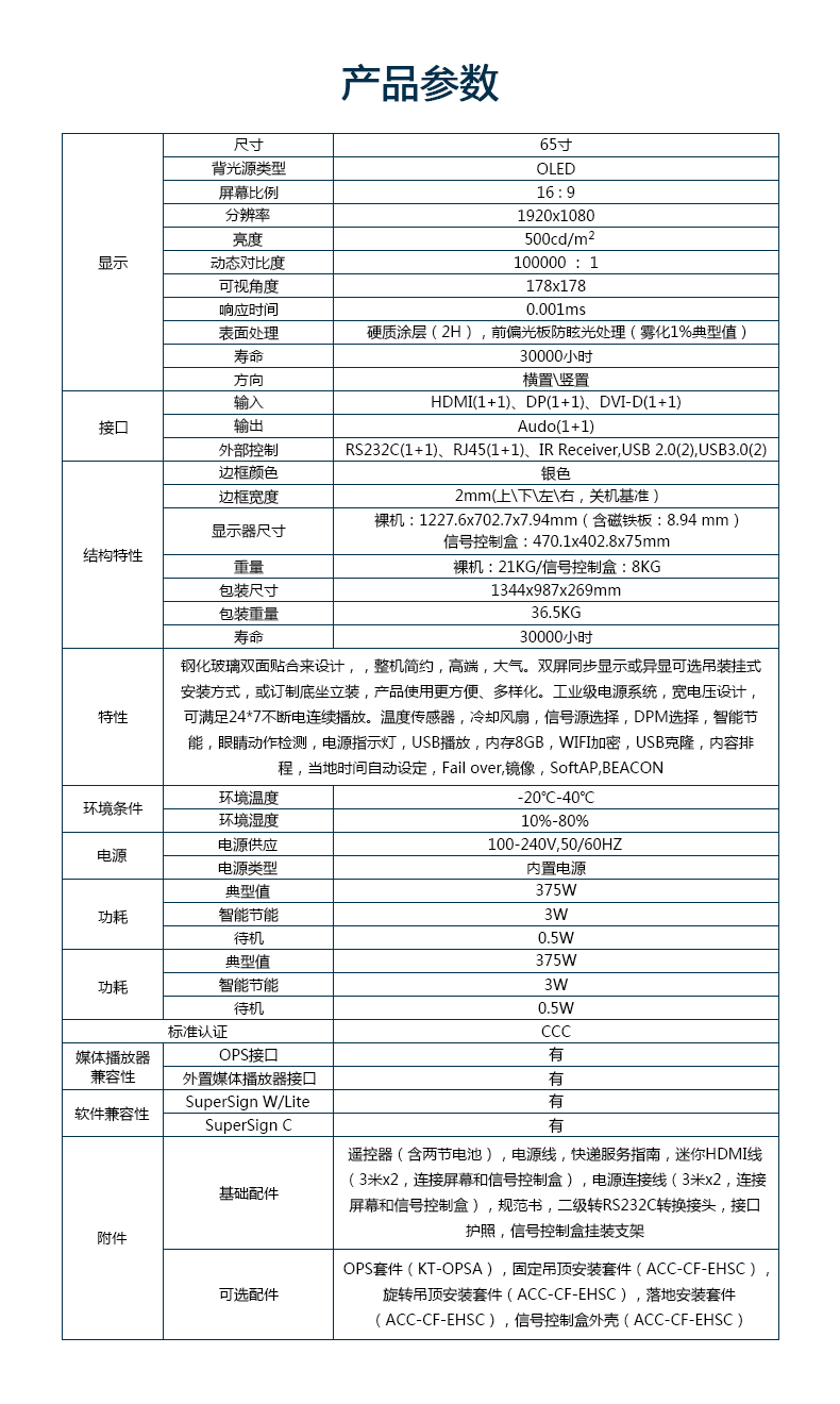 65寸超薄雙面吊掛OLED廣告機(jī)