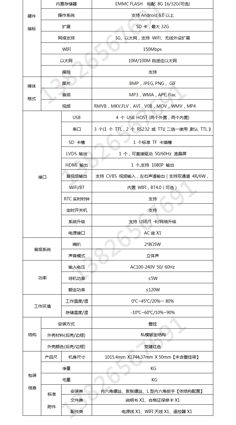| WiFi/BT | 內(nèi)置 WIFI,BT4.0(可選) |