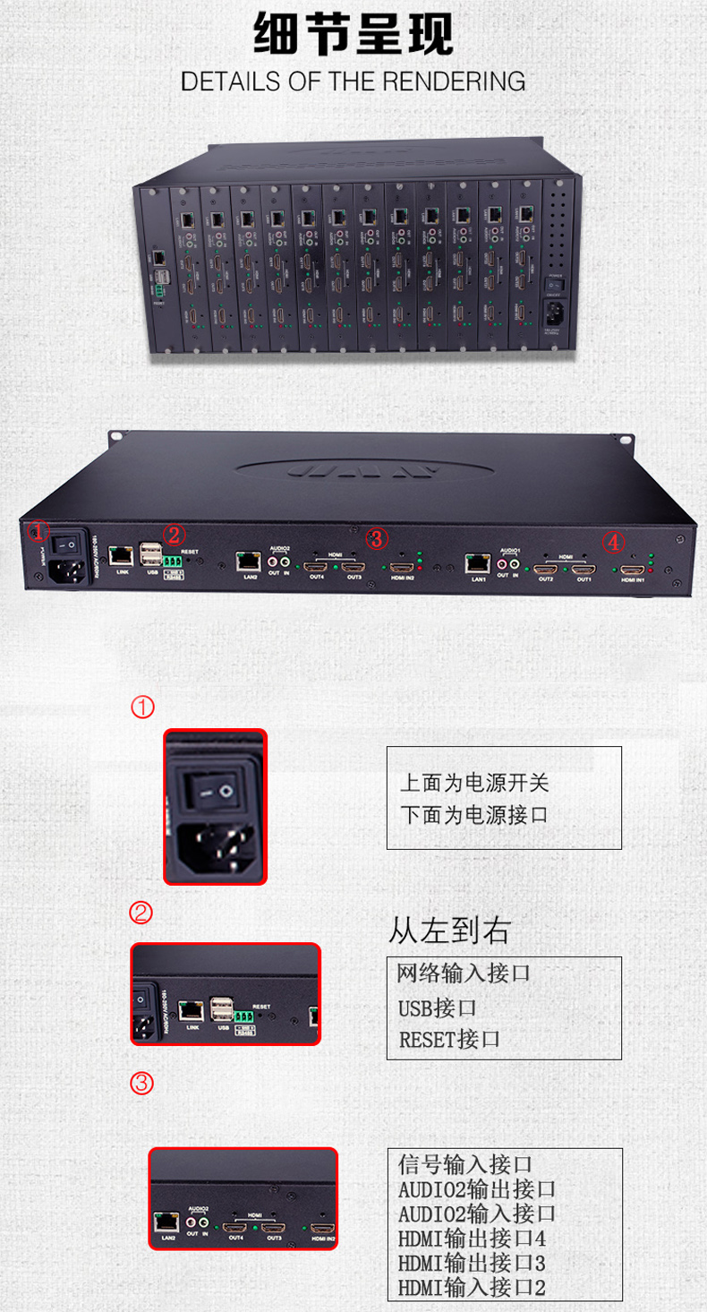 - 單模塊:帶2路HDMI2.0輸入、1路HDMI輸入、1路音頻輸入、1路音頻輸出;