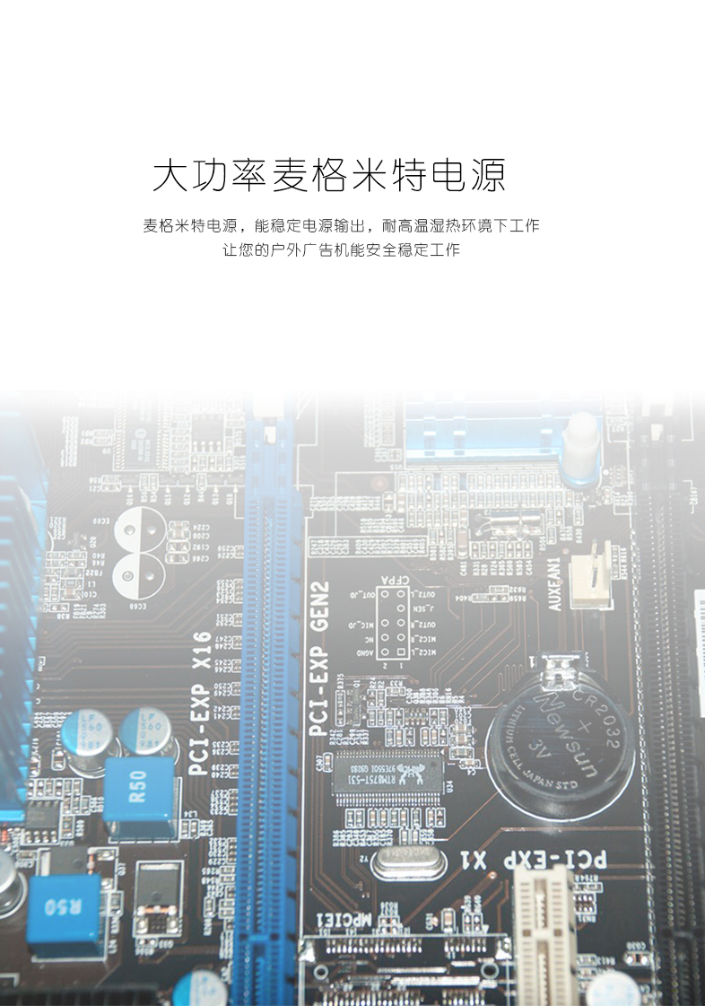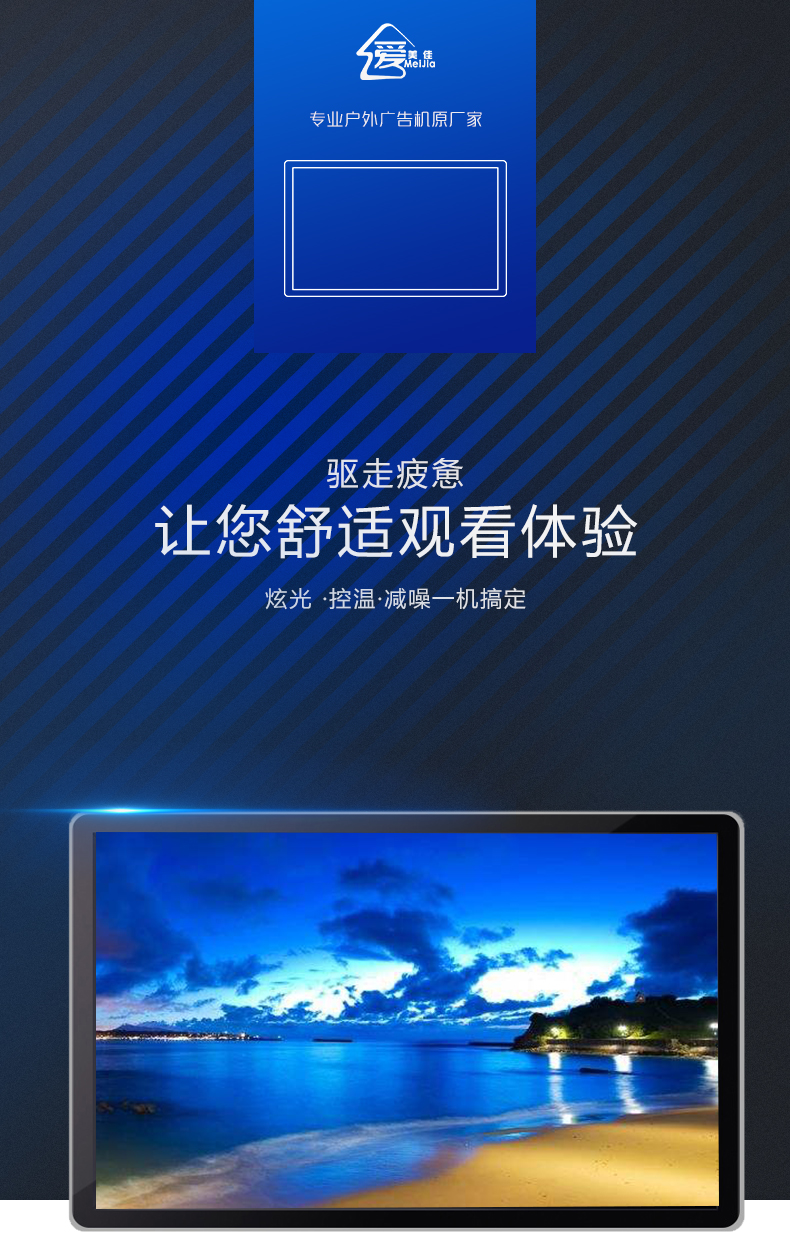 3.2 自主研發(fā)智能溫控系統(tǒng)控制盒,可以根據(jù)廣告機內(nèi)部溫度,智能調(diào)節(jié)整機內(nèi)部空氣和外部空氣進行時時循環(huán),所有外界風(fēng)先進入過濾網(wǎng),把風(fēng)分成屏前/后兩風(fēng)道循環(huán)。