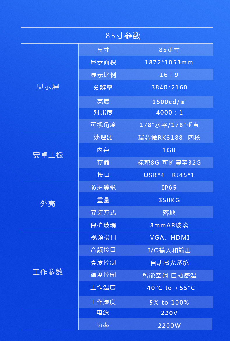 2.1 采用戶外專用高亮度液晶屏,亮度1500-2500nit,強光下可視,設(shè)計壽命50000小時 。