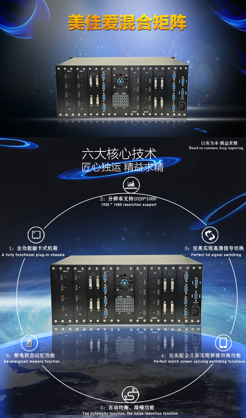 混合矩陣切換器是一款配置靈活的矩陣信號(hào)切換器。采用高性能的硬件設(shè)計(jì),完美支持各類高清晰數(shù)字/模擬信號(hào)切換處理。為各行業(yè)的多種視頻及控制信號(hào)分配切換處理提供一站式解決方案,可廣泛應(yīng)用于廣播電視工程、多媒體會(huì)議廳、大屏幕顯示工程、電視教學(xué)、指揮控制中心等場(chǎng)所。