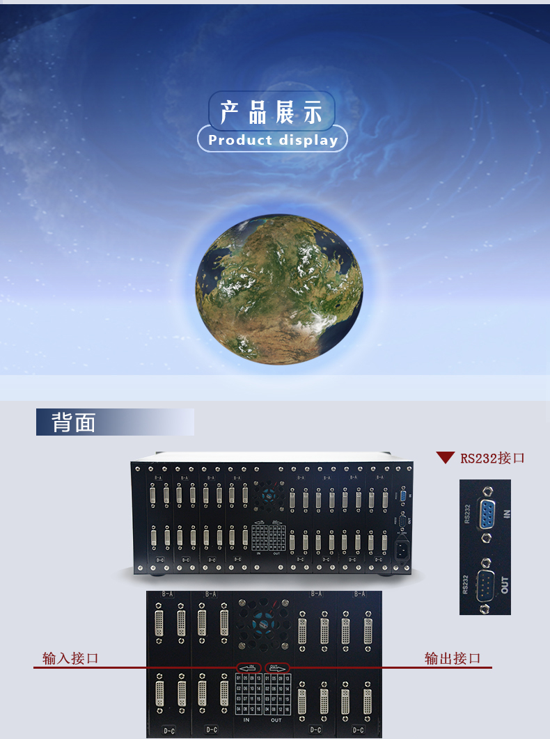 提供多種信號(hào)本地直連輸入,以及多種信號(hào)直連輸出。領(lǐng)先的全數(shù)字信號(hào)處理技術(shù)可保證信號(hào)無失真處理,將最優(yōu)質(zhì)的畫面送至顯示終端。