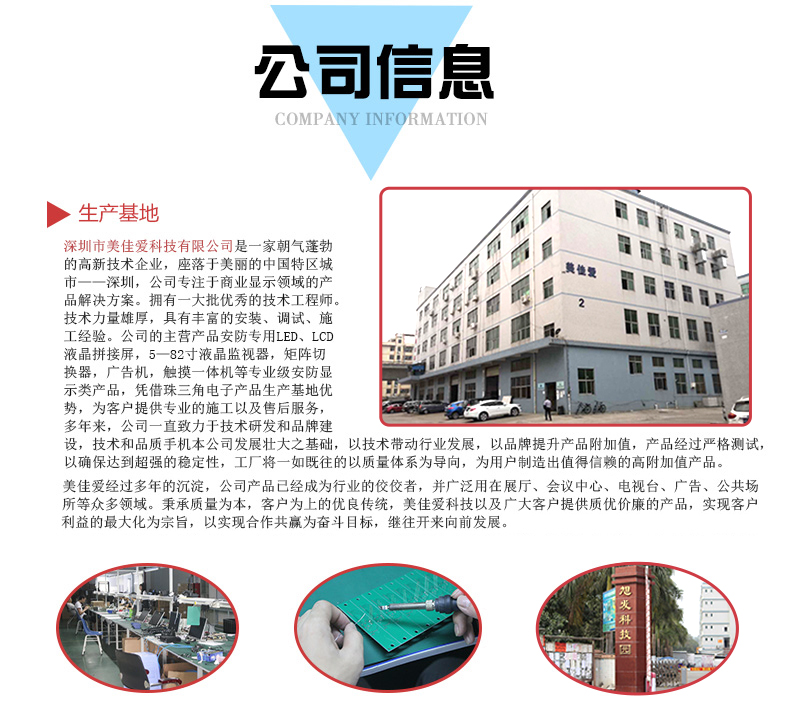 【美佳愛-4k液晶拼接屏生產(chǎn)廠家電話400-997-9971】工業(yè)級高清液晶監(jiān)視器產(chǎn)品通過ISO9001_3C_節(jié)能認(rèn)證等30多項認(rèn)證,主營22寸32寸40寸43寸46寸49寸55寸65寸75寸86寸98寸100寸工業(yè)級高清液晶監(jiān)視器,LG/京東方/三星大屏幕電視墻拼接單元,也有曲面,弧形,柔性,無縫LED顯示屏,顯示器,超窄邊高清監(jiān)視器,提供企業(yè)展廳展示,KTV,酒吧,會議室,視頻監(jiān)控系統(tǒng)解決方案設(shè)計-報價-安裝施工-售后超窄邊維修等服務(wù)